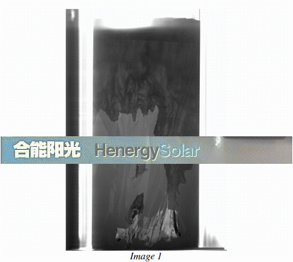 These defects form when melt silicon changes phase. Its a disturbance of phase change.Prescence of this kind of defect highly degrades solar cell quality, thus further processing of block areas containing microcrystalline defects in not suggested. Image 2 shows such kind of sefect detected on the top of a raw surface block.