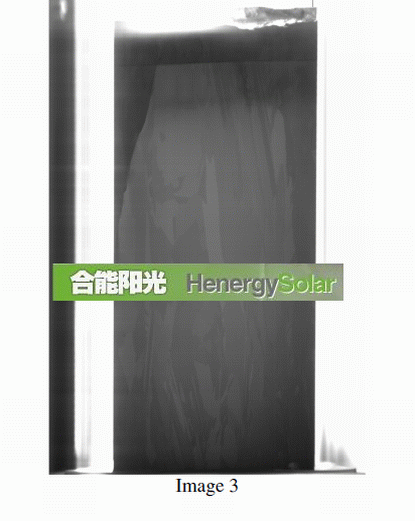 Cracks and microcracks may occure in silicone ingots and blocks as a result of mechanicalstress. In some cases large cracks can be hidden inside the block, and cannot be visually explored from outside. IR technique shows this kind of fault clearly. On Image 1 a large inside crack is visualized by NIR-Scan. This block seems intact by visualization outside.