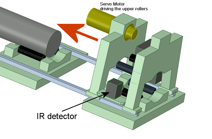 系統(tǒng)的基礎(chǔ)結(jié)構(gòu)由相同的輥動(dòng)單元構(gòu)成。輥?zhàn)友b置安全地固定鋼錠,并充當(dāng)兩側(cè)軌道的基礎(chǔ)結(jié)構(gòu),單晶硅芯長(zhǎng)棒沿滾動(dòng)支撐結(jié)構(gòu)鋪設(shè)。紅外測(cè)量單元在單晶長(zhǎng)棒上方移動(dòng),同時(shí)旋轉(zhuǎn)單晶長(zhǎng)棒。紅外測(cè)量是掃描式的,在固定電橋位置360度旋轉(zhuǎn)期間拍攝的圖像。測(cè)量單元移動(dòng)到下一個(gè)測(cè)量位置,對(duì)于圓柱形物體,這種測(cè)量策略給出了最準(zhǔn)確的結(jié)果。