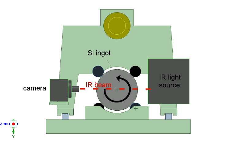 ■ 紅外測(cè)量單元在單晶長(zhǎng)棒上方移動(dòng),同時(shí)旋轉(zhuǎn)單晶長(zhǎng)棒。