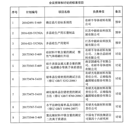 2018年4月24日會議正式召開,會議由全國半導體設(shè)備與材料標準化技術(shù)委員會材料分技術(shù)委員會主辦,由有研半導體材料有限公司協(xié)辦;江蘇中能硅業(yè)科技發(fā)展有限公司,云南臨滄鑫圓鍺業(yè)股份有限公司,北京合能陽光新能源技術(shù)有限公司等三十多家標委會成員及國內(nèi)半導體企業(yè)參加了會議并參與行業(yè)標準的預審和討論。會議由全國半導體設(shè)備與材料標準化技術(shù)委員會秘書長賀東江主持,并對本次會議的工作內(nèi)容給出指導性意見。