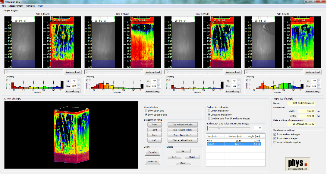 PL光致發光檢測模式中,集成了用戶通常檢測所需的少子檢測、彩色掃描標定(color maps)、柱狀圖分布等。另外硅塊掃描檢測的缺陷百分比和雜質百分比計算分析將為硅片生產效率的提升提供重要支撐。