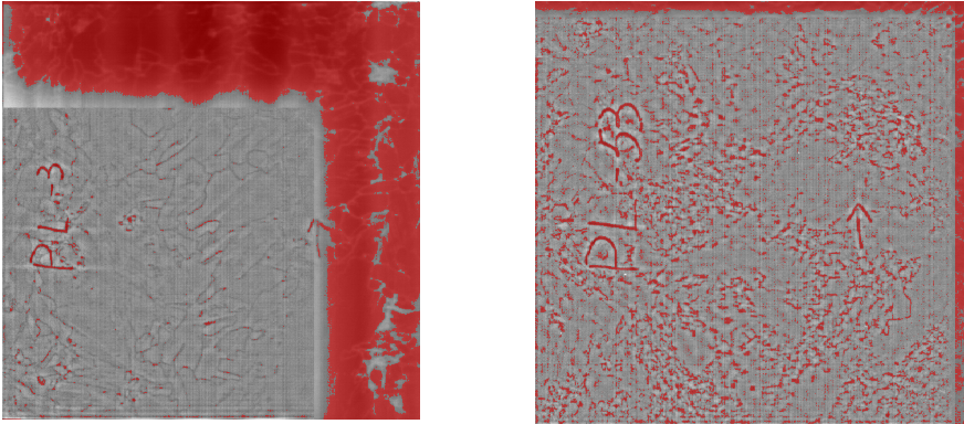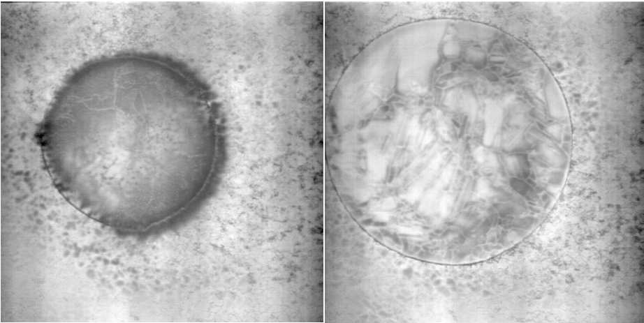 PL-03 dark edge+defect area = 36.6% of the surface,PL-53 dark edge+defect area = 17% of the surface雜質