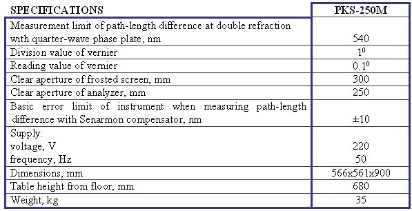 The device is designed for determining double refraction in flat blanks and products of transparent and weakly tinted materials, and is used for quantitative assessment of double refraction value by Senarmon method with an error of not greater than 10 nm, for assessment of double refraction distribution in an object by interference tinting, for examining distribution of double refraction in an object with circularly polarized light.