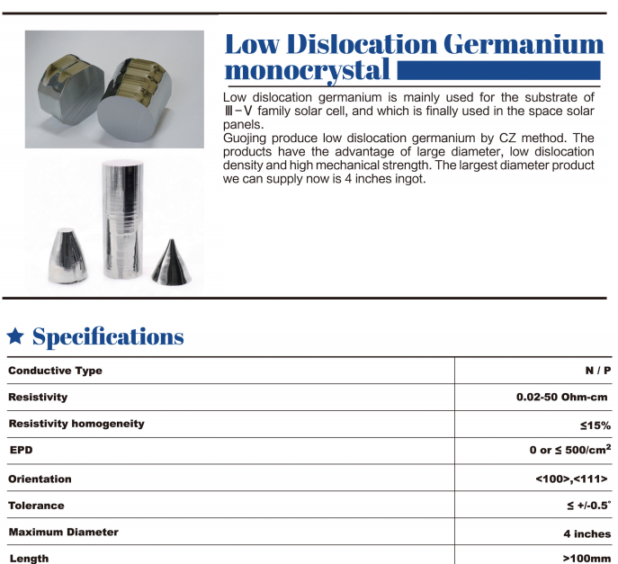 Consumables >> Consumables >> Various specifications of germanium/ingot/wafer